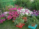 Ксюша, замечательная ссылка, и очень здорово, что все сорта, например, петуний знакомы и доступны! И опять синяя петуния с желтыми цветочками - здесь череда (биденс), а могла быть тимофилла, например. А микс , где светло-розовая ангелония и такая петуния, можно варьировать по цвету, а ангелонию поменять на сальвию мучнистую.