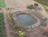 Буйной растительности вокруг пруда пока нет, что то посажено осенью прошлого года, что то весной этого.