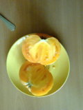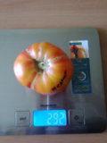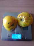 Да уж, лето выдалось, прям скажем... Но мои пока живы, тетя Фита не дошла до нашей северной страны Вот, вызрел у меня первый крупноплодник, нямка такая Золотые Купола, сорт СибСада, семена дала приятельница. Индетерминантный, но вырос у меня в ОГ примерно 120-130 см. Урожайный, вяжет хорошо, без пропусков, раздвоился сам после первой кисти. Среднеранний, я бы даже сказала ранний, судя потому, что созрел у меня первым из крупноплодников. Оранжево-желтые плоды в форме немного вытянутого сердца, на первой кисти такие - 5 штук, на второй 4, но крупнее. На третьей и четвертой кисти по 5 штук такого же размера как на первой, не знаю, успеют ли вызреть Сочный, мясистый, сладкий с легкой кислинкой, небольшое такое фруктово-апельсиновое послевкусье. Кожица мне сначала показалась чуть жестковатой, но это может быть связано с холодами и дождями бесконечными Первое фото - третья кисть еще зеленая.