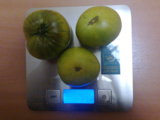 А с этим томатом я вляпалась. Зеленоплодный. Ждала пока чуть бронза появится. И только сегодня до меня дошло что его недаром назвали Абсентом Он остается яркоизумрудного цвета и только попа проявляет немного розовых прожилок. Встала на карачки и ага, 2 кисти с розовыми попами. Поспели уже полностью. Довезти без побоев не удалось. Томат под 2м, плодов нормально, не много сгорел. Цвет сногсшибательный. Вкус сложный, вроде сладкий, но имеет лимонную кислинку, похож по вкусу на киви. Мне понравился.