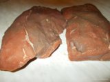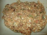 Теперь, КУРИНАЯ ВЕТЧИНА:) Берем два вида куриного мяса. Грудки и красное мясо с ножек. :) Перемалываем мясо в комбайне. Молоть долго не надо. Надо чтобы фарш получился грубого помола. с целыми кусочками мяса. :) Готового фарша потребуется примерно грамм 600-700:) Понадобятся орегано, 2-3 зубчика чеснока, панировочные сухари и болгарский перец, сушеный кусочками. :) Еще нужен будет сыр адыгейский, или сулугуни. У меня адыгейский. Сыра нужно будет грамм150.:) Сыр нужно потереть на крупной терке. :) Теперь готовим фарш. :)В рубленое мясо вбиваем 2 сырых яйца, добавляем орегано, солим, перчим. :) Добавляем мелкопорезанный чеснок и мелкопорезанную свежую петрушку (примерно 2 столовые ложки). Добавляем сушеный болгарский перец и 3 столовые ложки панировочных сухарей. :) Затем в фарш добавляем тертый сыр и хорошенько все перемешиваем. Дальше. берем 1 столовую ложку сладкой молотой паприки и 1-2 столовые ложки растительного масла. :) Растираем в эмульсию. Затем берем формочки для запекания. :)У меня одноразовые формочки из фольги. :) Смазываем их изнутри слегка нашей паприкой с маслом. затем выкладываем фарш. У меня получилось тютелька-в тютельку 2 формочки :) Затем фарш сверху обильно обмазываем эмульсией из паприки и масла. :) Ставим запекаться формочки с ветчиной в духовку на 35 минут при 200 градусах. :) Вытаскиваем готовую ветчину из духовки. :) Даем хорошо. остыть. :) Лучше дать постоять ветчине несколько часов. Можно оставить на ночь. А затем вытаскиваем холодную ветчину из формочек и нарезаем ломтями. :) Очень вкусно! Отличная альтернатива магазинной колбасе и ветчине. Кладешь ломтик ветчины на кусочек хлеба и наслаждаешься :) Никаких тебе "Е"-шек;) Также отличная закуска для праздничного стола