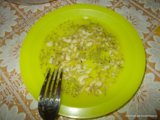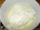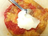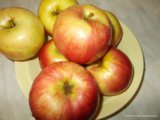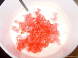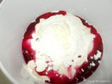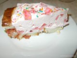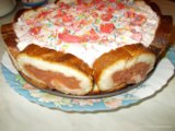 А теперь ТОРТ :) Вкусный. Очень вкусный Необычный. :) Сначала кажется. что он сложный. На самом деле -нет.:) Готовится несложно. Картинок только будет много. :aga:Буду подробно показывать процесс. :) Для начала сделаем желе. :) Берем пачку желе 75 грамм. , растворяем ее в150 граммах кипятка, выливаем в форму и ставим на холод застывать. Дальше нам нужно будет яблочное пюре :) Можно купить готовое в банках. Но, я предпочла сделать пюре домашнее. :) Я купила свежие яблоки . очистила их от шкурки и сердцевины. натерла на мелкой терке и слегка притушила в кастрюльке в течение 5 -7 минут. :) Сахар не добавлять! Остужаем. Пюре готово. :) Берем 250 грамм готового яблочного пюре. добавляем к нему 50 грамм сиропа фруктового:) У меня вот такой. Затем берем пакетик 10 грамм желатина. заливаем его 3 столовыми ложками холодной воды. даем разбухнуть. Затем разбухший желатин слегка подогреть на плитке до полного растворения, добавить его к яблочному пюре с сиропом. и все перемешать в однородную массу. Теперь готовим тесто. Берем 4 яйца. Отделяем желтки от белков. В белки добавляем щепотку соли и взбиваем миксером в устойчивую пену. :) В отдельной посуде растираем 4 желтка с 2 столовыми ложками сахара добела. Я миксером взбила. :) Затем в желтки добавляем 4 столовые ложки кипятка. снова все хорошо взбиваем. А затем добавляем 3 столовые ложки муки. Снова смешиваем все в однородную массу миксером. :) Затем в желтковую массу добавляем взбитые белки и перемешиваем аккуратно тесто вкруговую и как бы снизу вверх, чтобы белки не осели. :) Застилаем противень пекарской бумагой, смазываем маслом. :) Выкладываем тесто . Выпекаем в разогретой духовке 15-18 минут при 180градусах.:) Вот так запекся корж. :) Затем расстилаем кусок пекарской бумаги, посыпаем его сахарной пудрой. а на него переворачиваем испеченный корж. Отслаиваем бумагу, на которой он пекся. :) И сворачиваем корж в рулет прямо с бумагой. на которую мы его выложили. :)Даем тесту остыть. Затем разворачиваем корж и промазываем яблочным пюре с сиропом. :) Снова сворачиваем, уже без бумаги. Даем постоять немного. А затем нарезаем рулет ломтиками толщиной примерно 1 см. :) Берем разъемную форму и выкладываем дно и стенки формы ломтиками бисквитного рулета. Вот так. :) Осталось сделать крем. :) Берем 40 грамм желатина Заливаем желатин 70 мл холодной воды, даем желатину разбухнуть. Затем на плитке подогреваем желатин на слабом огне, пока он не растворится полностью. :) Желатин лучше разводить в какой-нибудь металлической кружке. или миске. :) Пока желатин разбухает в отдельной посудине взобьем миксером 900 грамм густой сметаны. или йогурта с 50-60 граммами сахарной пудры. :) Добавляем к сметане фруктовый сироп, 100 грамм. :)Все хорошо перемешиваем. :) Затем вливаем тонкой струйкой в сметанный крем растворенный, теплый желатин. :) При этом хорошенько мешаем крем, чтобы желатин распределился равномерно. :) Затем достаем из холодильника застывшее желе. нарезаем его кубиками. И добавляем нарезанное кубиками желе в сметанный крем. :) Оставим только 1 столовую ложечку нарезанного желе для украшения. :) Выливаем сметанный крем в разьемную форму на ломтики бисквитного рулета. Разравниваем. И ставим в холодильник для застывания, минут на 30-35.:) Достаем из холодильника торт. Украшаем кусочками желе и декоративными посыпушками. :)Отрезаем кусочек и кушаем. Не забываем закрыть глаз