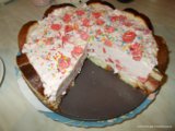 :)ТВОРОЖНЫЙ ПИРОГ, А-ЛЯ ЧИЗКЕЙК. :) Готовим тесто. Берем 150 грамм творога. Смешиваем творог с 1 яйцом+ 6 ст. ложек растительного масла+ 1 пакетика ванилина+2 столовые ложки сахара. В отдельной миске смешиваем 2 столовые ложки какао-порошка+ 3 чайные ложки разрыхлителя теста + щепотка соли+ 250-270 грамм муки:) Соединяем творожную массу с сухими ингредиентами и замешиваем тесто. :) Потом тесто можно раскатать, но я просто смазала руки растительным маслом и расшлепала тесто по форме для запекания. Форма нужна с высокими бортиками. Форму смазать маслом. :) Теперь делаем начинку. Берем 3 яйца. Отделяем желтки от белков. Белки взбиваем миксером с щепоткой соли в крепкую пену. :) В отдельной посудине желтки растираем с 250 граммами творога. Добавляем 3-4 столовые ложки сахара+2 столовые ложки (с горкой) крахмала+ выдавленный с половинки лимона сок+ 250 грамм сметаны. :) Все перемешиваем миксером в однородную массу. Теперь к этой творожной массе аккуратно подмешиваем взбитые белки. :) Выкладываем эту начинку на тесто. Затем берем консервированные персики. Нарезаем их ломтиками. :) Выкладываем персики на начинку. :) Отправляем пирог запекаться в духовку на 30-40 минут при 180 градусах. Если пирог сверху сильно зарумянивается. то нужно прикрыть его листиком фольги блестящей стороной внутрь, к пирогу. :) Вот такой красавчик запекся. Даем немного остыть, нарезаем, кушаем. Можно сверху посыпать сахарной пудрой. :)