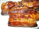 Добрый вечер! :) Покажу несколько очередных рецептов. :) ГРУДИНКА, ЗАПЕЧЕНАЯ, ТАЮЩАЯ ВО РТУ:) Понадобится кусок свежей грудинки примерно грамм 800-900.:) Натереть слегка грудинку солью. :) Теперь делаем соус. :) Смешиваем 2 столовые ложки соевого соуса+ 2 столовые ложки меда+2 столовые ложки зерновой французской горчицы+2 столовые ложки бальзамического уксуса. :) Я еще 1 столовую ложечку жидкого дыма добавила. :) Также понадобится чеснок. Зубчиков 6-7:) Зубчики чеснока нарезаем на четвертинки вдоль и нашпиговываем им грудинку по всей длине. :) Затем обмазываем обильно грудинку нашим соусом. :) Помещаем грудинку в рукав для запекания шкуркой вверх. :) Ставим противень с грудинкой в духовку и запекаем примерно 1ч 20 минут, при температуре 180градусов.:) Вытаскиваем грудинку из духовки. Освобождаем от рукава. Даем чуток остыть и нарезаем ломтиками. :) Грудинка получается очень-очень нежная, ароматная и вкусная. Ее можно кушать и теплой. а можно и холодной. Можно подавать на праздничный стол. :)