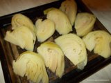 КАПУСТА, ЗАПЕЧЕНАЯ ПОД СЫРОМ:) Берем свежую капусту. У меня маленькие вилочки примерно диаметром 15 см. Режем капусту крупными ломтями. Захватываем немного кочерыжки. иначе капустные ломти рассыпятся. Складываем аккуратно ломти капусты в кастрюлю, заливаем водой, солим по вкусу и даем закипеть. :) Варим примерно 10 минут. :) Воду сливаем. капусту слегка остужаем. :) Затем раскладываем ломти капусты на смазанный маслом противень. :) Сверху обильно намазываем капусту каким-нибудь соусом. кетчупом. :) У меня кетчуп Хайнц мексиканский. :) Отправляем капусту в духовку запекаться на 20-30минут при 180-200 градусах. :) Достаем запеченную капусту из духовки, посыпаем обильно натертым на мелкой терке твердым сыром и отправляем в духовку еще минут на 5-10.:) Получается шикарно вкусная капуста. Вкусна как самостоятельное блюдо, а также в качестве гарнира. :)