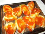 КУРИНЫЕ КРЫЛЫШКИ ЗАКУСОЧНЫЕ, ПОД КИСЛО-СЛАДКИМ ТОМАТНЫМ СОУСОМ:) Крылышки помыть, разрезать . Готовим маринад. 0.5 литра кефира + 1 чайная ложка соли+ 4 зубчика чеснока. пропущенных через пресс+ 1/2 чайной ложки молотого черного перца+1/2 чайной ложки красного жгучего молотого перца. Хорошо перемешиваем крылья в маринаде и оставляем на1 час мариноваться. :) Затем выкладываем крылья на смазанный маслом противень и запекаем в духовке 30-40 минут при 200 градусах. :) Достаем запеченые крылышки из духовки. перекладываем их в миску. тепкрь быстренько сделаем томатный соус. :) На маленькой сковородочке растопим 50 грамм сливочного масла. Добавим 2 столовые ложки коричневого сахара. В растопленное масло с сахаром добавим 2 столовые ложки томатной пасты+ 1 столовую ложку соуса чили. :) Слегка солим. перчим и добавим 1 зубчик чеснока. пропущенный через пресс. :) Доводим соус до кипения и сразу же снимаем с огня. Заливаем этим соусом крылышки. перемешиваем. Выкладываем на блюдо и подаем сразу на стол. Вкуснятина Отличная горячая закуска.