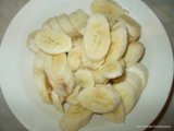 А теперь БАНАНОВЫЙ ПИРОГ Сначала сделаем соус:) На маленькой сковородке растопить 100 грамм сливочного масла. Добавить 150 грамм коричневого сахара. Можно и обычный сахар использовать. :) Довести смесь до кипения и кипятить на маленьком огне минуты 4-5.:) Выкладываем этот соус в смазанную маслом форму. :) Я в силиконовую форму выложила. :) Теперь берем бананы. 4 штуки. :)режем их кружочками наискосок. :) Выкладываем бананы слоем на соус в форму :) Теперь готовим тесто. :) 4 яйца смешиваем с 200 граммами сахара. Слегка взбиваем миксером. :) Добавляем 100 грамм растопленного сливочного масла. :) Затем добавляем 1 чайную ложку разрыхлителя теста и150 грамм муки. У меня нынче разрыхлитель вот такой с шафраном. :) Всю массу хорошо перемешиваем миксером. Получается вот такое тесто. :) Выкладываем тесто на бананы в форму. :) Ставим в духовку на 20 минут при 180градусах. Потом накрываем пирог фольгой и выпекаем в духовке еще 15минут. :) Вытаскиваем готовый пирог из духовки. Переворачиваем его на блюдо, бананами вверх. :) Посыпаем сверху горячий пирог тертым шоколадом. :) У меня шоколад с орехами. :) Нарезаем кусочками и ...;) НУ ОЧЕНЬ ВКУСНО! ОЧЕНЬ нежный, влажный. воздушный пирог. :)