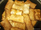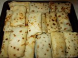 А теперь БЛИНЧИКИ, ФАРШИРОВАННЫЕ КАРТОШКОЙ С ПИКАНТНЫМ СЕЛЕДОЧНЫМ СОУСОМ :) Также выпекаем блины по любому любимому рецепту. :) Дальше делаем обычное картофельное пюре:) Обжариваем на сковородке отдельно мелкопорезанный репчатый лук. :) Соединяем лук с картофельным пюре. :) Теперь фаршируем блинчики картофельным пюре с жареным луком Блинчики фаршируем бледной стороной наружу. :) Сворачиваем конвертиками. :) Вот сколько вкусняшек получилось Это заготовочки. ;) В следующем посте расскажу про соус. :)