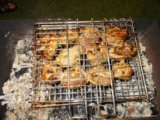 :)Добрый вечер всем уважаемым форумчанам. Наступило лето, а с ним и время готовить вкусняшки на мангале, на костре. :) Предлагаю несколько новеньких рецептов. :) МЯСО-ГРИЛЬ, ОТЛИЧНАЯ АЛЬТЕРНАТИВА ШАШЛЫКУ Берем кусок мяса. У меня свиная вырезка. :) И нарезаем его полосками толщиной 1см .:) Ширина мясных полосок примерно см 2 и длина полосок 15-20см.:) Вот так :) Готовим маринад. :) Режем мелко полпучка петрушки, режем мелко 2 зубчика чеснока, слегка солим перчим по вкусу, добавляем 2столовые ложки соевого соуса и 1стакан гранатового сока. :) Выкладываем в маринад полоски мяса Оставляем мариноваться часика 2-3 :) Затем, берем замаринованные полоски мяса и сворачиваем их улиткой :) Закалываем зубочистками.:) Вот так. :) Раскладываем мясо на решетке и обжариваем с двух сторон минут 15-20. До готовности и образования румяной корочки. :) А вот и мясо готово Так как мясо нарезано довольно тонко, то и прожаривается оно быстрее и равномернее. Не подгорает. :) Просто не успевает обгореть. :aga:Отличная замена поднадоевшему шашлыку.